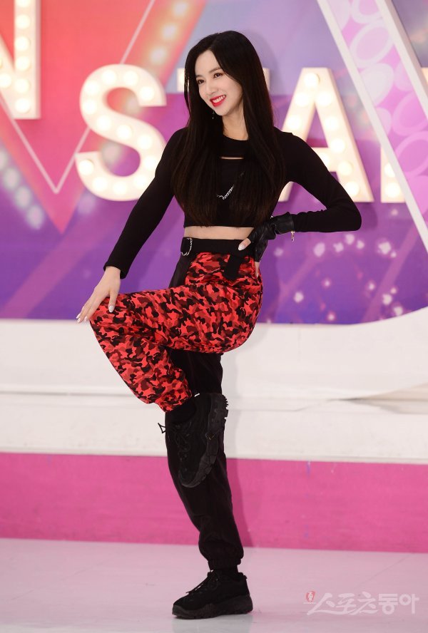 그룹 체리블렛 지원이 2일 서울 마포구 상암동 에스플렉스센터에서 열린 tbs ‘팩트인스타’ 녹화현장 공개에 참석해 포토타임을 갖고 있다.