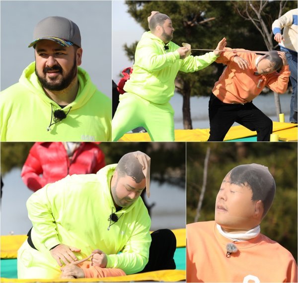 하지만 김준호가 당하고만 있을 리 없을 터. 속수무책의 상황에 김준호는 회심의 방귀탄을 투하했고, 직격타를 맞은 샘 해밍턴은 “방귀냄새 진짜 나!”라며 괴로움을 호소했다는 전언이다. 이에 괴력의 형광 슈렉 샘 해밍턴과 방귀탄을 자유자재로 활용하는 꾀돌이 김준호의 대결 결과에 궁금증이 증폭된다.