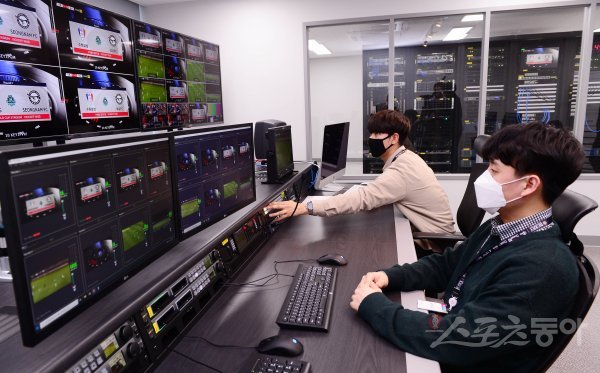 3일 서울 강서구 마곡동 K리그 미디어센터에서 열린 K리그의 전 경기를 동시 모니터링 및 관리 시스템인 ‘K리그 미디어센터’ 구축 브리핑에서 시연회를 갖고 있다.