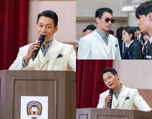 공개된 사진 속 박훈은 흰 슈트 차림으로 많은 아이들이 서 있는 신성중학교 강당에 들어선 모습이다. 그는 선글라스를 낀 채 발걸음을 멈추고 특정한 한 아이를 뚫어지게 바라보거나, 강당 단상에 서서 마이크를 잡고 연설하고 있다. 다부진 체격과 눈빛, 날카로운 표정, 좌중을 압도하는 카리스마가 강렬해 도무지 눈을 뗄 수 없다.