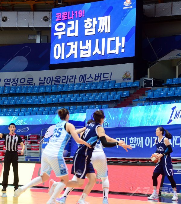 4일 인천 도원체육관에서 ‘하나원큐 2019-2020 여자프로농구’ 인천 신한은행과 용인 삼성생명의 경기가 열렸다. 코로나19 여파로 무관중 경기가 펼쳐지고 있다.