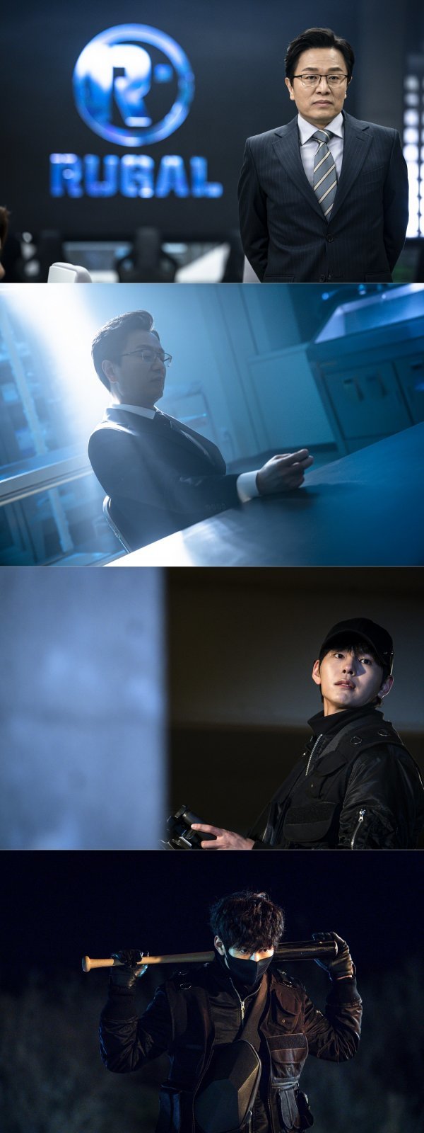 차별화된 세계관을 그려낼 개성 강한 캐릭터들이 베일을 벗을 때마다 시청자들의 기대도 뜨거워지고 있다. 그런 가운데 공개된 사진 속 인간병기 히어로 루갈을 탄생시킨 최근철과 인공 몸을 지닌 히어로 이광철의 모습이 궁금증을 자극한다. 먼저 최근철 국장의 날 선 눈빛이 눈길을 끈다. 루갈을 진두지휘하는 총책임자답게 독보적 아우라가 시선을 강탈한다. 협상의 순간엔 날카롭게 변하는 모습까지, 진중하면서도 묵직한 카리스마가 인상적이다. 특별한 신체 능력을 지닌 루갈의 마지막 히어로 이광철은 훈훈한 매력과 거친 카리스마를 동시에 보여준다. 드론 조작이 특기인 이광철은 루갈의 막강한 전술을 완성하는 ‘키’ 캐릭터. 그뿐만 아니라 강철보다 단단한 인공 몸을 지닌 그는 실전에서 맹활약을 펼친다. 강기범(최진혁 분), 한태웅(조동혁 분), 송미나(정혜인 분)와 함께 그려낼 최강의 팀플레이가 기대감을 증폭시킨다.