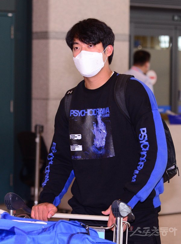 삼성 라이온즈 원태인이 8일 인천국제공항을 통해 일본 오키나와 전지훈련을 마치고 입국하고 있다. 삼성은 일본 정부의 코로나19 관련 입국 정책 변경으로 8일 후쿠오카, 미야자키를 경유해 조기 귀국을 결정했다. 주현희 기자 teth1147@donga.com
