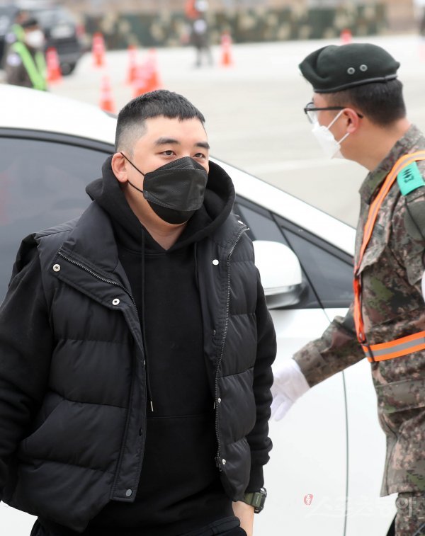 그룹 빅뱅 출신 가수 승리가 9일 강원도 철원군 육군 6사단 청성신병교육대에 입대를 위해 차량에서 내리고 있다.