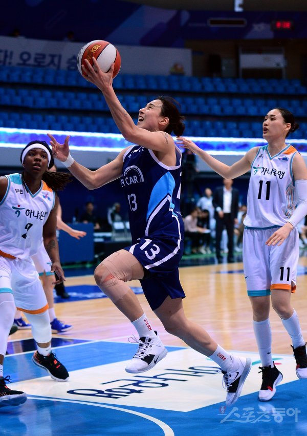 9일 인천 도원체육관에서 열린 ‘하나원큐 2019-2020 여자프로농구’ 인천 신한은행과 부천 하나은행 경기에서 신한은행 김단비가 하나은행 강이슬의 수비를 피해 슛을 쏘고 있다.