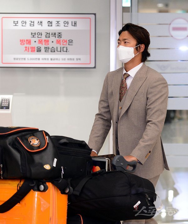 한화가 미국 전지훈련을 마치고 10일 인천국제공항을 통해 귀국했다. 한화 안영명이 입국장을 빠져나오고 있다.