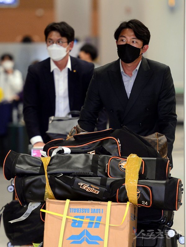 한화가 미국 전지훈련을 마치고 10일 인천국제공항을 통해 귀국했다. 한화 장시환이 입국장을 빠져나오고 있다.
