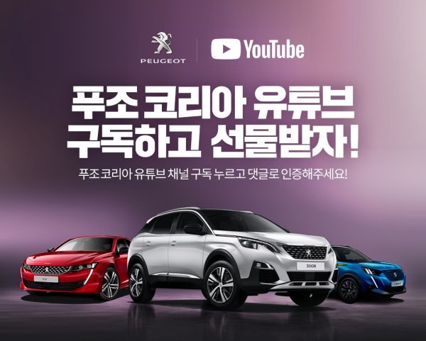 푸조 코리아 유튜브 채널 리뉴얼 오픈을 기념해 SNS 이벤트도 진행한다. 3월 20일까지 푸조 코리아 유튜브 채널을 구독하고 푸조 페이스북 이벤트 페이지에 댓글 인증한 고객 중 추첨을 통해 10명에게 푸조 미니어처를, 10명에게 스타벅스 기프티콘을 각각 경품으로 제공한다.