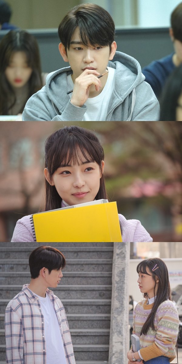 공개된 사진 속에는 풋풋한 대학생 그 자체로 변신한 박진영과 전소니, 그리고 서로를 바라보는 두 사람의 모습이 담겼다. 특히 마주치는 시선만으로도 풋풋한 기류를 발산하는 이들의 모습은 가슴 떨리는 20대의 사랑을 보여주고 있다.