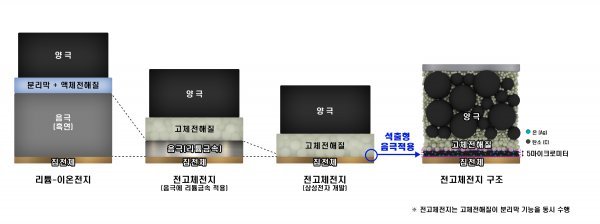 삼성전자가 차세대 배터리로 주목받는 ‘전고체전지’의 안정성은 높이고, 크기는 줄이는 원천기술을 공개했다.