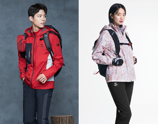 봄은 바람의 계절이다. 두꺼운 다운재킷을 벗어던지고 가볍고 화사한 바람막이 자켓을 걸쳐보자. 아이더 ‘오거 인피니움 자켓’을 입은 박보검(왼쪽)과 ‘프로 쉴드 자켓’을 착용한 노스페이스 홍보대사 신민아. 사진제공|아이더·노스페이스