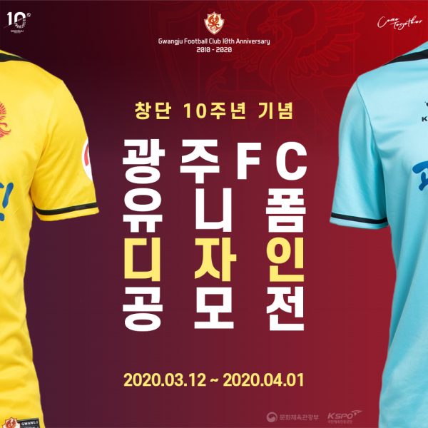 광주는 12일 2020시즌 창단 10주년을 기념하기 위해 팬들이 직접 유니폼 디자인에 참여할 수 있는 디자인 및 아이디어 공모전을 개최한다고 밝혔다.