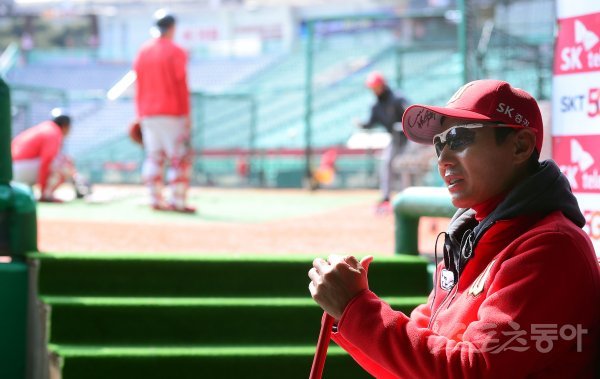 12일 인천 SK행복드림구장에서 SK가 스프링캠프를 마치고 국내 훈련을 가졌다. SK 염경엽 감독이 인터뷰를 하고 있다.