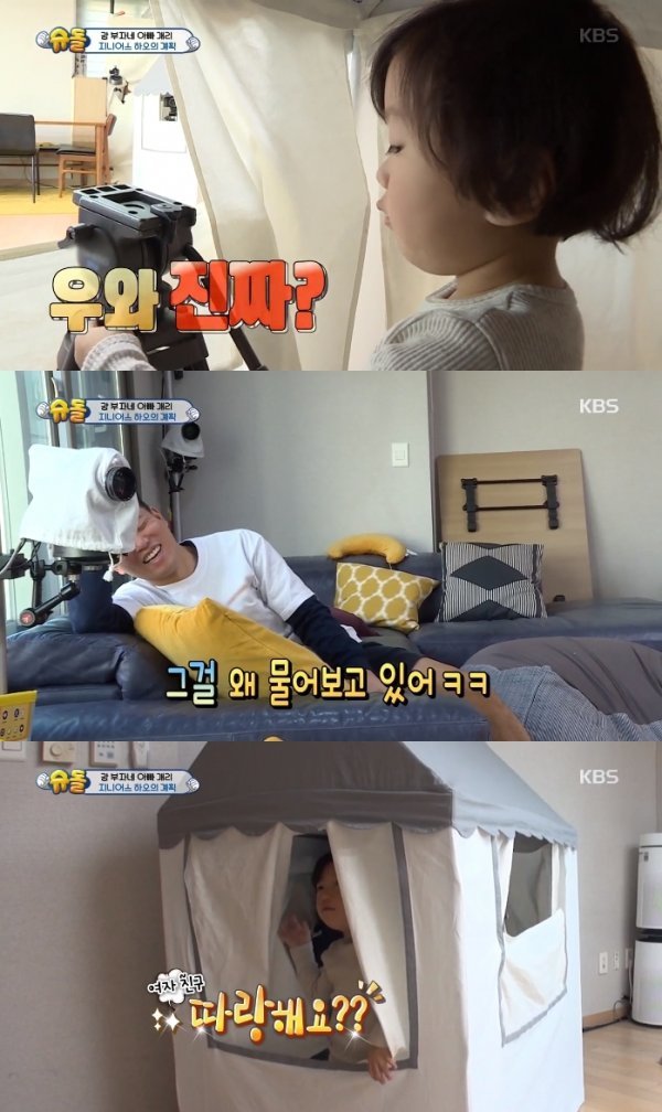 이날 하오는 제작진의 카메라에 큰 관심을 보이며 집중을 시작했다. 이에 개리가 다가와 같이 놀아주려고 했지만 집중하는 하오의 관심을 뺏기엔 역부족이었다. 결국 하오마저 “떨어져. 설거지해”라며 아빠 개리를 밀어냈다.