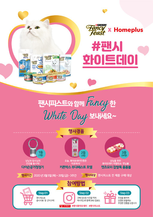 네슬레 퓨리나의 프리미엄 습식 캣푸드 브랜드 팬시피스트가 홈플러스와 손잡고 20일까지 ‘#팬시화이트데이’ 이벤트를 진행한다.