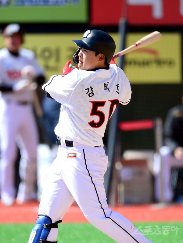 프로야구 개막이 4월 중으로 잠정연기된 가운데 KT가 16일 수원KT위즈파크에서 자체 청백전을 가졌다. 2회말 2사 빅(홈)팀 강백호가 좌전 2루타를 치고 있다.