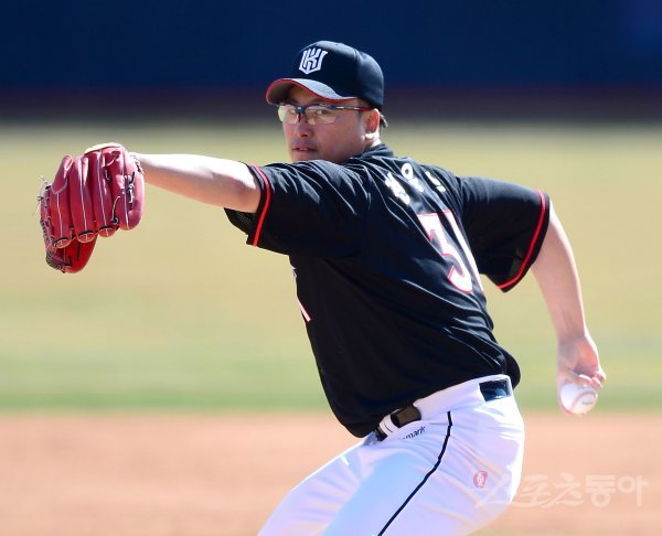 프로야구 개막이 4월 중으로 잠정연기된 가운데 KT가 16일 수원KT위즈파크에서 자체 청백전을 가졌다. 교체 등판한 또리(어웨이)팀 전유수가 역투하고 있다.