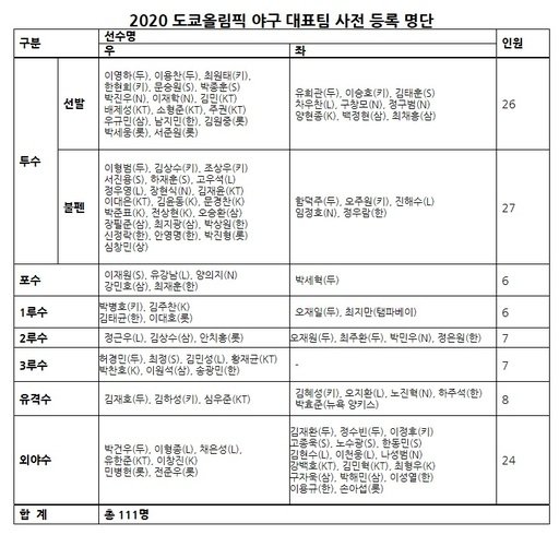 한편, KBO는 16일(월) 사전 등록 명단을 대한야구소프트볼협회에 전달했으며, 대한야구소프트볼협회는 사전 등록 자료를 대한체육회에 제출했다.