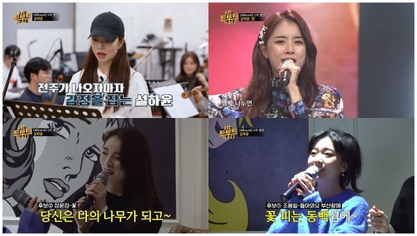 이어 설하윤과 요요미는 곡 선곡을 위해 노래방에서 선곡 회의를 진행했다. 트로트 대세 두 사람이 흥 넘치는 잔망 케미를 선보였다는 후문. 그 후 설하윤은 “진정성 있게 부를 수 있는 노래는 장윤정 선배님의 ‘꽃’이다”라며 우여곡절 끝에 경연 곡을 결정지었다.