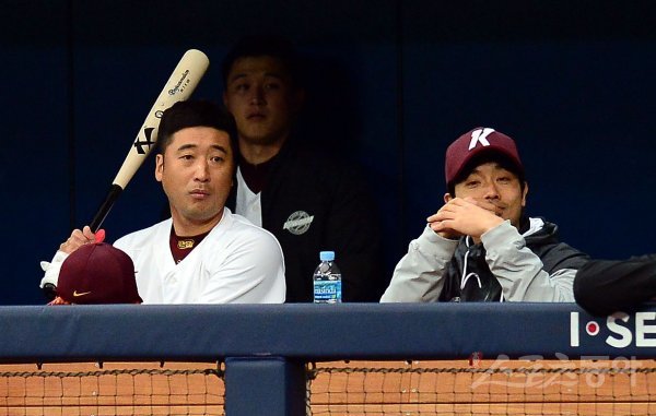 프로야구 개막이 4월 중으로 잠정 연기된 가운데 키움 히어로즈가 18일 서울 고척스카이돔에서 청백전을 가졌다. 대타로 출전한 홈팀 이택근이 경기를 바라보고 있다.