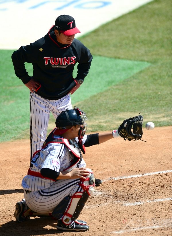 프로야구 개막이 4월 중으로 잠정 연기된 가운데 LG 트윈스가 22일 서울 잠실야구장에서 자체 정백전을 가졌다. 류중일 감독이 타석에서 투수의 투구를 바라보고 있다.