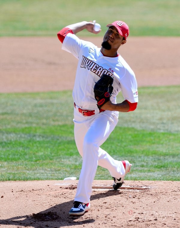 22일 인천 SK행복드림구장에서 SK 와이번스가 청백전 경기를 가졌다. SK 핀토가 힘차게 볼을 던지고 있다.