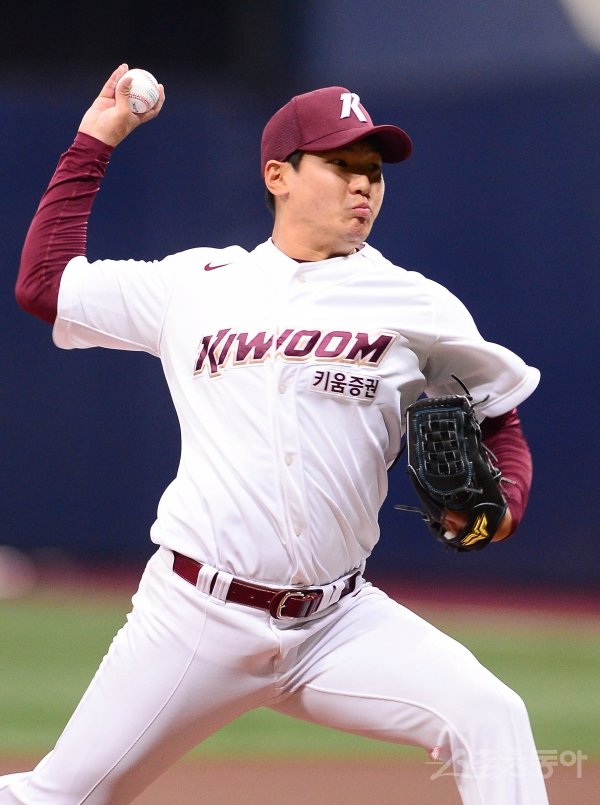 신종 코로나19 확산으로 프로야구 개막일이 4월로 늦춰진 가운데 키움 히어로즈가 22일 서울 구로구 고척스카이돔에서 청백전을 가졌다. 1회초 선발 등판한 홈팀 조덕길이 역투하고 있다.