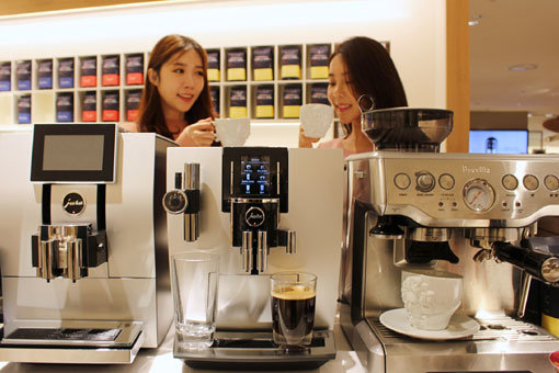 코로나19가 낳은 집콕족의 애정 아이템이 주목받고 있다. 사진은 롯데백화점에서 판매하는 해외 가전 브랜드의 커피머신. 사진제공|롯데백화점