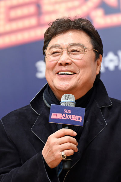 올해 75세인 남진은 수영으로 건강을 다지며 음악을 통해 젊은이들과 소통하며 흥겨운 일상을 보내고 있다. 사진은 최근 그가 새롭게 흥을 노래하는 SBS ‘트롯신이 떴다’의 제작발표회 장면. 사진제공|SBS