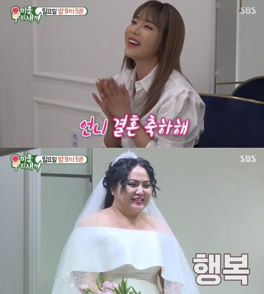 SBS '미운 우리 새끼' 22일 방송 후 다음 주 예고편에서는 홍진영 언니 홍선영이 웨딩드레스를 입고 있는 모습이 공개됐다.