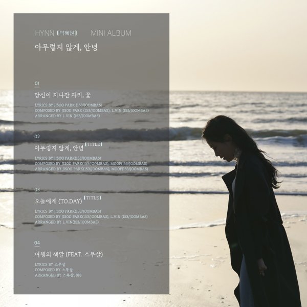 23일 HYNN(박혜원) 공식 SNS 채널 등에 새 미니앨범 ‘아무렇지 않게, 안녕’ 트랙리스트를 담은 이미지가 게재됐다. 석양이 지는 쓸쓸한 바닷가를 배경으로 한층 세련된 스타일을 선보이고 있는 HYNN(박혜원)의 모습이 담겨 눈길을 끌었다.