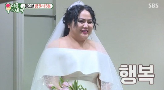 22일 밤 방송된 SBS ‘미운우리새끼’ 말미에는 다음 주 예고편으로 홍선영-홍진영 자매의 일상이 짧게 선공개됐다. 홍진영과 함께 웨딩숍을 찾은 홍선영은 오프숄더 스타일의 웨딩드레스를 입고 등장했다. 22kg 감량에 성공한 그는 고운 자태를 뽐냈다.