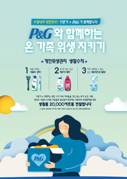 이날 11번가에서 팸퍼스·다우니·페브리즈·오랄비·질레트·팬틴·헤드앤숄더 등 다양한 P&G의 생활용품 브랜드를 15%+10% 쿠폰할인 가격에 구매 가능하다. 특히 팸퍼스·다우니·질레트 등 주요 행사 상품을 구매하는 고객에게 섬유유연제·세제·면도기 등의 사은품을 증정한다.