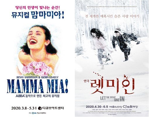 뮤지컬 <맘마미아!>, 연극 <렛미인> 공연 취소