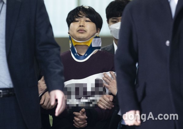 인터넷 메신저 텔레그렘에서 미성년자 여성들의 성 착취물을 제작 유포 혐의를 받고 있는 박사방\' 운영자 조주빈이 25일 오전 서울 종로경찰서에서 검찰에 송치되고 있다.