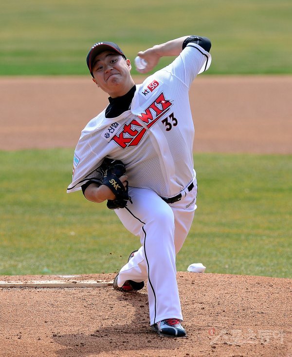 25일 경기도 수원 kt위즈파크에서 kt위즈의 청백전 경기가 열렸다. kt 빅팀 박세진이 힘차게 볼을 던지고 있다.