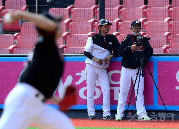 25일 경기도 수원 kt위즈파크에서 kt위즈의 청백전 경기가 열렸다. kt 전력분석원이 경기를 촬영하고 있다.