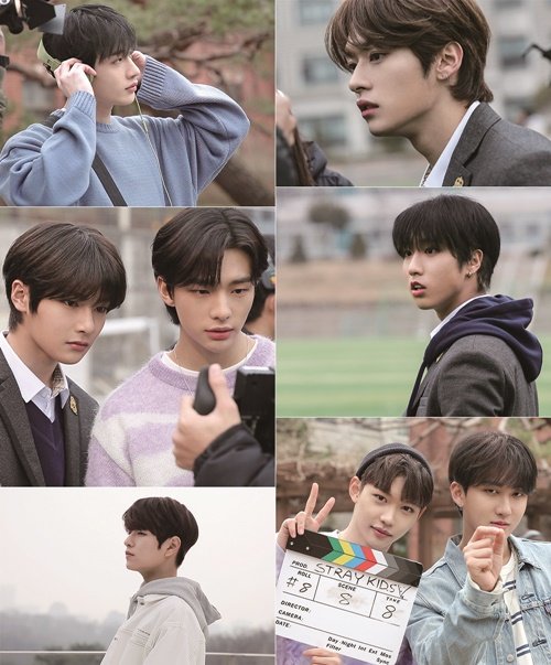 영화 동아리의 연출 부원으로 분한 방찬, 한, 승민은 각자 맡은 역할에 몰입해 디테일한 표정 연기를 펼쳤다. 미성숙하기에 더 아름다운 첫사랑의 감정을 연기한 리노와 현진 그리고 함께 열연을 펼친 아이엔은 최상의 결과물을 만들기 위해 모니터링에 열중했다. 창빈과 필릭스는 쉬는 시간에 귀여운 포즈를 잡으며 또래 친구들 같은 모습을 보였다.