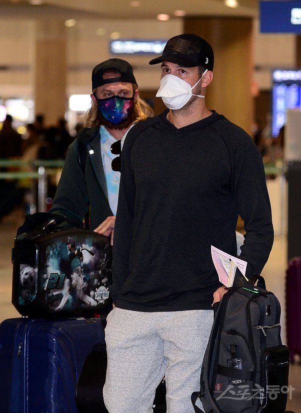 키움 히어로즈 브리검이 미국 LA에서 출발해 26일 인천국제공항으로 입국하고 있다.