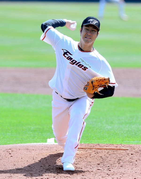 29일 대전 한화생명 이글스파크에서 한화 이글스의 청백전 경기가 열렸다. 한화 백팀 장민재가 힘차게 볼을 던지고 있다.