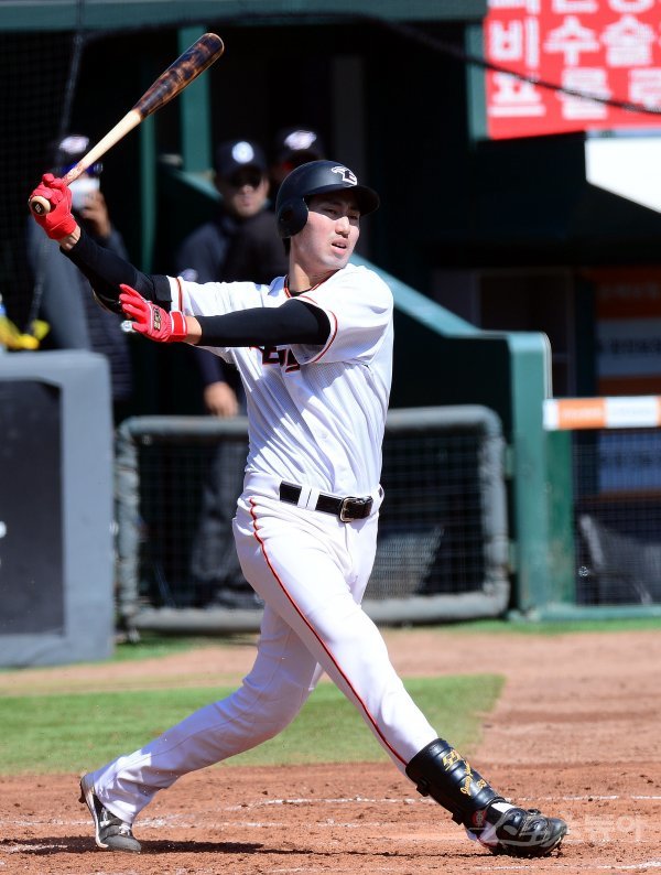 29일 대전 한화생명 이글스파크에서 한화 이글스의 청백전 경기가 열렸다. 한화 백팀 정진호가 타격을 펼치고 있다.