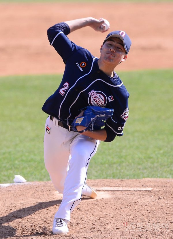 프로야구가 4월 7일부터 인접 구단 간 연습경기를 계획한 가운데 두산 베어스가 29일 서울 송파구 잠실야구장에서 청백전을 가졌다. 6회말 교체 등판한 청팀 정현욱이 역투하고 있다.