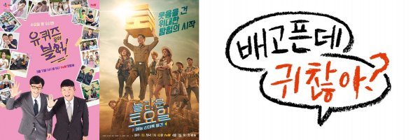 ‘유 퀴즈 온 더 블록’, ‘놀라운 토요일 - 도레미 마켓’, ‘배고픈데 귀찮아?’가 이번주 휴방한다.
