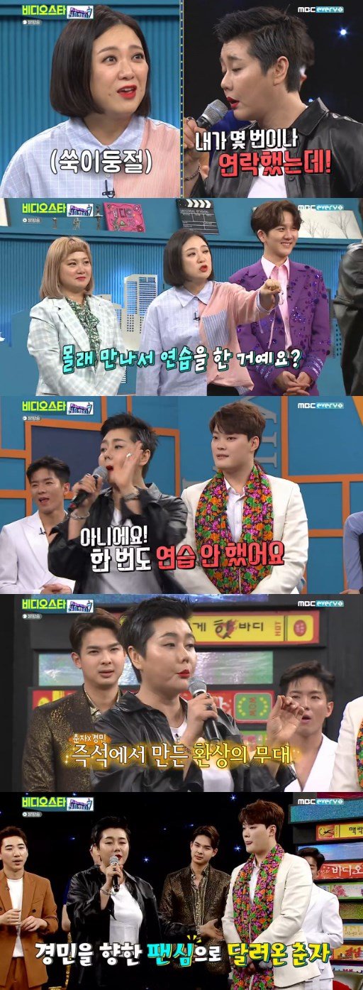 이날 김경민이 ‘춘자야’를 열창한 가운데 가수 춘자가 무대 위로 깜짝 등장했다. MC들은 “진짜 춘자냐”며 놀란 모습을 보였다.