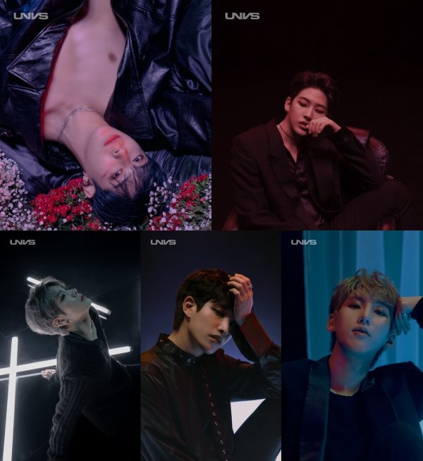 사진에는 멤버 각자만의 개성이 느껴지는 포즈로 치명적 아우라를 발산하고 있는 UNVS의 모습이 담겨있다. 꽃 위에 누워 매혹적인 분위기를 발산하고 있는 리더 JUN H.를 비롯해 올백 머리로 기존에 볼 수 없던 섹시함을 선보인 YY, 날렵한 턱선으로 치명적 매력을 자랑하는 은호, 다크한 분위기 속 강렬한 카리스마를 머금은 창규, 고개를 치켜든 채 섹시함과 도회적 분위기를 동시에 풍기는 젠까지 보는 이들의 이목을 사로잡았다.