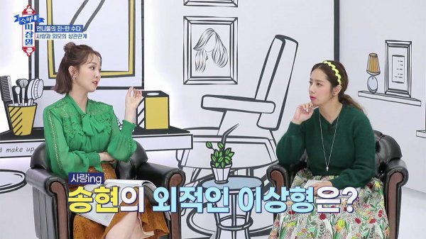 ‘숙희’의 기막힌 사연에 전 남자친구를 일제히 비난하던 세 MC는 ‘사랑과 외모의 상관관계’를 놓고 수다 삼매경에 빠진다. 특히 연인을 공개하고 예쁜 사랑을 키워나가고 있는 최송현은 외모 이상형에 대한 질문에 “지금까지 만났던 사람 중 비슷한 분위기였던 사람이나 잘생긴 외모를 가지고 있던 사람이 없다. 오빠가 최고 잘생겼다”라고 밝혀 신아영, 오정연의 질투 섞인 시선을 받았다고. 이에 아나운서 입사 동기로 오랜 우정을 자랑하는 오정연이 “잘생긴 사람이 왜 없냐”며 의문을 제기했으나 최송현은 “에이 없어 없어. 흉악해”라며 단호한 답변으로 흔들림 없는 사랑꾼의 자세를 지켰다.
