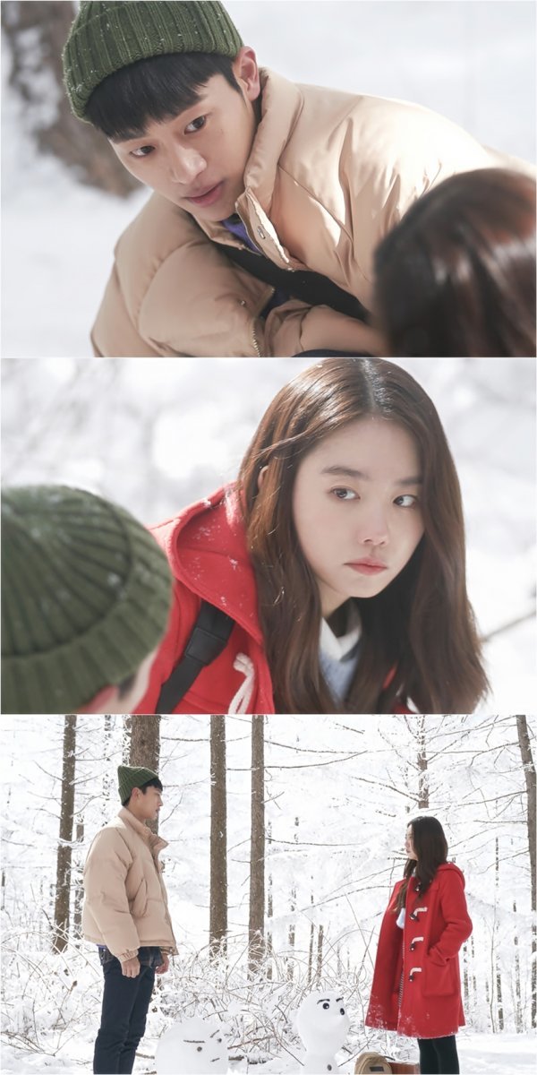 공개된 스틸컷에선 한 폭의 그림 같은 하얀 설원에서 두 청춘 남녀가 눈사람을 만들고 있다. 찬홍은 백일장 대표로, 세윤은 미술대회 대표로 출전한 자리. 눈사람을 만들다 서로를 바라보는 두 사람의 시선엔 묘한 설렘이 녹아들었다. 겨울의 한 가운데에 있지만 찬홍에겐 따뜻한 봄이 찾아온 순간인 듯하다.