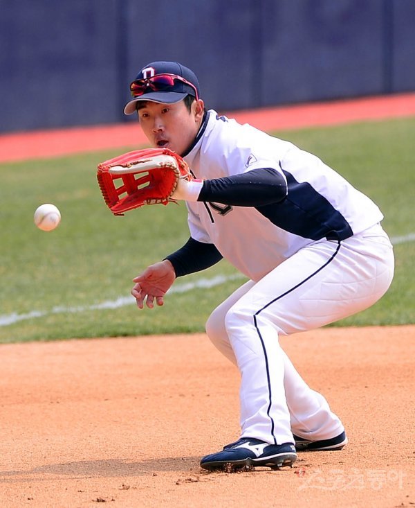 프로야구 개막이 4월로 연기된 가운데 두산베어스가 7일 서울 송파구 잠실야구장에서 훈련을 가졌다. 두산 허경민이 수비 훈련을 하고 있다.