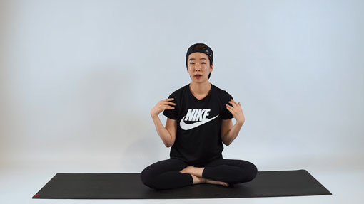 ⑥ 이때 어깨에 통증이 있는 분들은 안 하시길 권장합니다. 이때에도 불안정한 사람은 다리를 넓게, 쉽다고 생각하는 사람은 다리를 모읍니다.