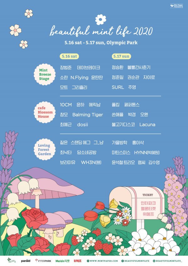 5월 16일 토요일, 17일 일요일 양일간 올림픽 공원에서 열리는 뷰티풀 민트 라이프 2020은 지난 1차 라인업과 2차 라인업을 통해 장범준, 데이브레이크, 소란, 엔플라잉, 10CM, 윤하, 에릭남, 정승환, 볼빨간사춘기, 정준일, 권순관, 폴킴, 페퍼톤스 등 32팀의 아티스트를 공개한 바 있다. 티켓은 인터파크와 멜론티켓, 위메프를 통해 판매 중이고 보다 자세한 정보는 민트페이퍼와 뷰티풀 민트 라이프의 어플리케이션 및 SNS, 홈페이지 등을 통해 확인할 수 있다.